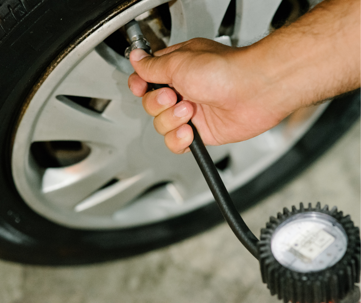 When your TPMS lights up, as soon as it’s safe to do so, pull over and manually check your tire pressure with a tire pressure gauge. If the tires are low, add air until the pressure reaches the manufacturer’s recommended pounds per square inch (PSI). This can be located in the door jamb on the driver’s front door or in the vehicle’s manual.