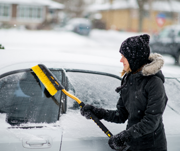 vehicle, it can also hit another car on the road. Snow brushes and ice scrapers will be important to take everywhere this winter.